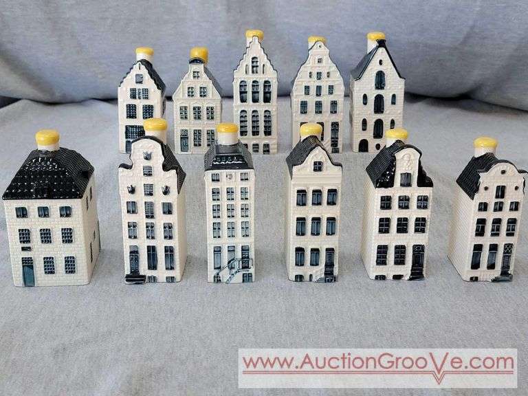 Blue Delft Houses Exclusively made for KLM Dutch Airlines by BOLS. Given to Business Class Passengers on KLM Flights. Each of These Houses Depict a Real Dutch Building. All Unopened, Group of 11. Numbers 50 - 60. All unopened. (I cannot guarantee the alcohol is any good and there has probably been some evaporation.) (If shipping they will need to be emptied and there will be additional handling on the shipping. Please inquire before bidding). LR