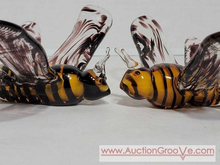 Pair of Bee Art Glass Paperweights. 8 x 5 x 3 and 7 x 5 x 3. BLR