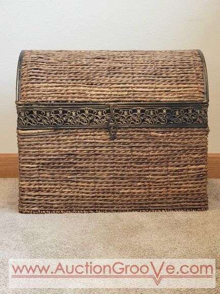 Wicker and Metal Dome Top Storage Trunk. 23.5 x 16 x 20. BLR