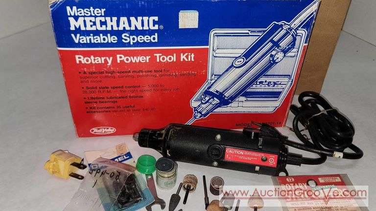 Master MECHANIC Variable Speed Rotary Power Tool Kit. 5,000 to 28,000 RPM. Includes accessories as shown in photos. R4