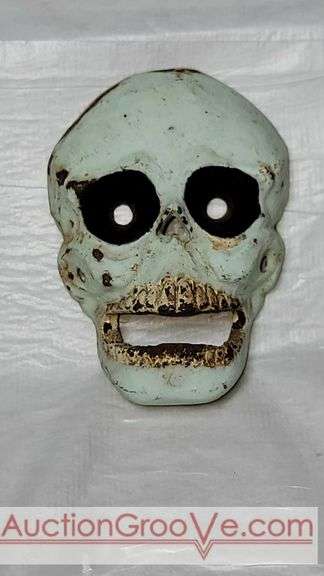 IRON SKULL. 3" x 4" high. Matches examples shown as BOTTLE OPENERS. Would look great decorated with gemstones or all by it's lonesome. T