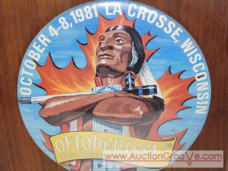 LOT 4 - 1981 La Crosse Oktoberfest Parade Marshall Plaque with 6" Button. LR
