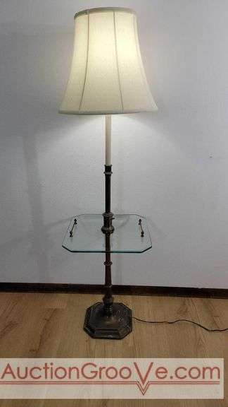 Mid Century Modern Lamp Table. 16" square Beveled edge table top at 22" off the floor and lamp top is approximately 57" tall. 3-way switch but only had a 1-way bulb. D