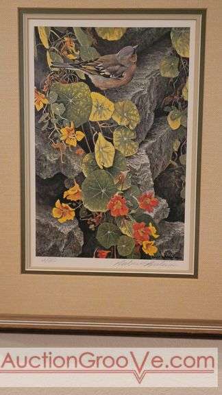 "On the Garden Wall" by Canadian artist Robert Bateman. Signed & numbered Limited Edition Print 68/950. Triple Matted & No Glare glass. Frame measures 14.75" w x 19" h. Reserve only $75. K