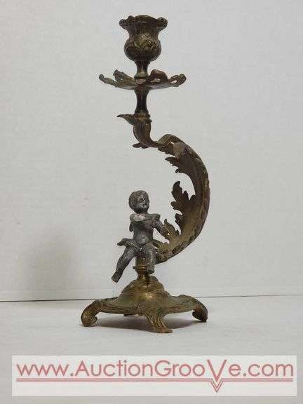 Vintage Cherub Brass Candle Stick Holder. Unfortunately I couldn't find its mate. So there is only one. 10" tall. LR