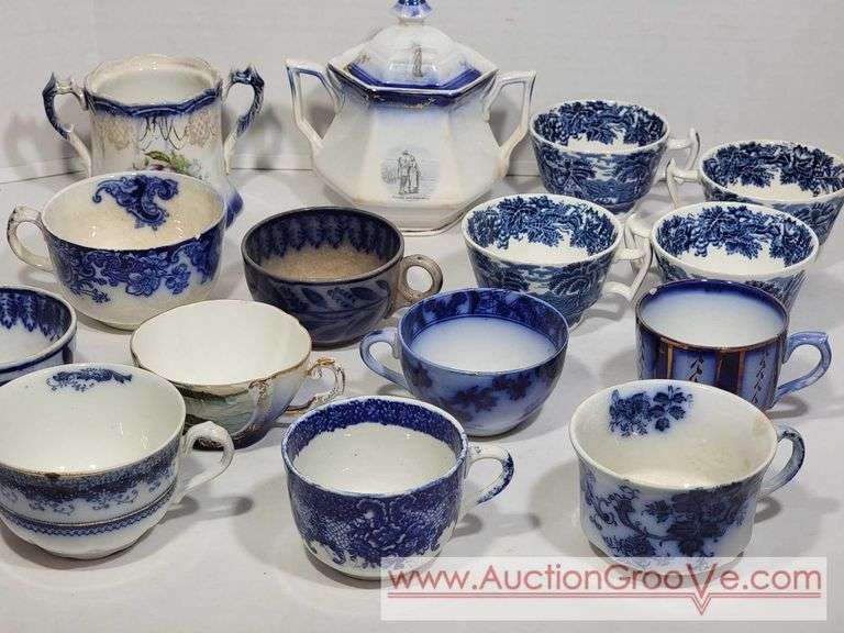 LOT 123 - Flow Blue Tea Cups and More. Some chips. LR