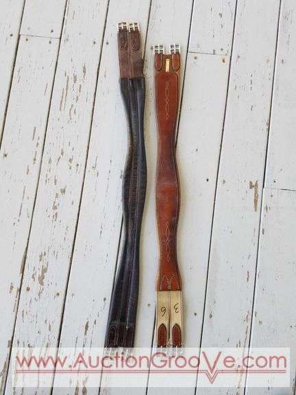 Brown leather girth at 36in and dark brown/black girth 40in. Both in great condition.