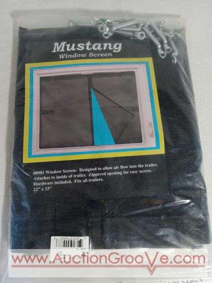 Mustang window screen, designed to allow air flow into the trailer. Attaches to inside of trailer, zippered opening for easy access. Hardware included, fits all trailers 22x33.